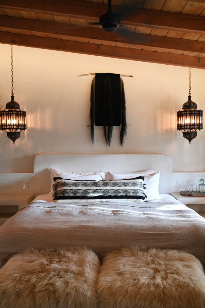 “We wanted the design and architecture to fit into the natural landscape and feel like maybe it has always been here,” explains Winters, who, along with Strukel, serves as Chief of Design. The hotel’s new iteration does just that. Its footprint mirrors the original structure, and even the three hot spring pools retain their classic shapes. Rounded walls, built-in adobe-style furniture, and unlacquered brass fixtures nod to desert vernaculars from Morocco, Mexico and the Southwest. Everything’s been selected to weather with time, not against it.