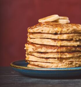 Scented with bananas, vanilla, cinnamon and nutmeg, warm, fluffy Coconut Banana Pancakes (Rise and Shine) were another easy win, pulled together in minutes and consumed just as quickly.
